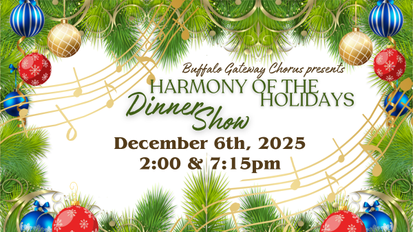 The Buffalo Gateway Sweet Adeline Chorus invites you to celebrate the season with harmony, heart, and holiday cheer at our beloved Harmony of the Holidays Dinner Show on Saturday, December 6, 2025!
