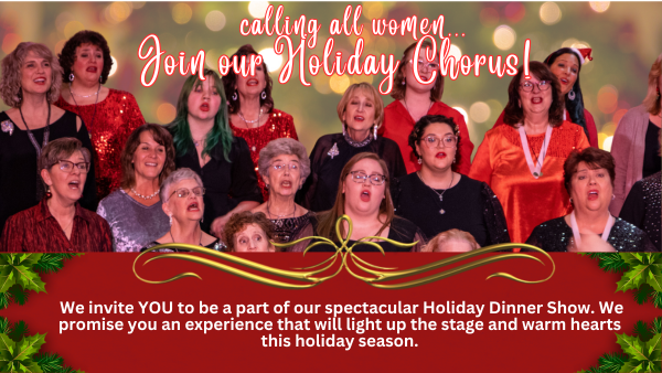 The Buffalo Gateway Sweet Adeline Chorus is calling all women who love to sing, laugh, and spread a little holiday cheer — we want YOU to join our special Holiday Chorus and perform in our spectacular Harmony of the Holidays Dinner Show this December!